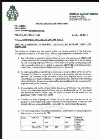 banks for the sale of the PTA to the intending pilgrims. The Central