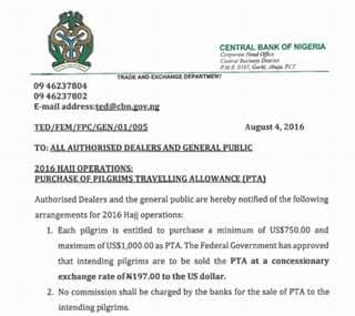 intending pilgrims at a concessionary exchange rate of N197 to $1. This