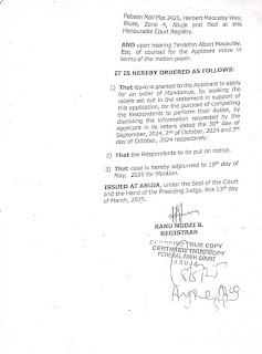The court granted the applicant leave to proceed with the order of Mandamus, directed that the respondents be put on notice, and adjourned the matter to May 19, 2025, for mention.