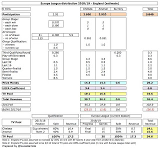 As the above shows, Arsenal and Chelsea will net significantly lower sums for reaching the Europa League final.Total revenue from the competition has significantly increased by 40%, although that is still lower than the 54% increase which has taken effect in the Champions League.